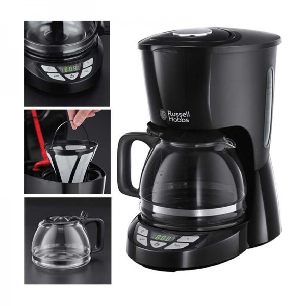 Ecran LCD - Capacité de Réservoir: 1,25 litres - Technologie de douchette avancée - Nombre de tasses: jusqu'à 10 grandes tasses - Porte filtre amovible - Système Stop goutte Programmable - jusqu'à 24 heures à l'avance - Indicateur du niveau d'eau - Garantie: 1 an